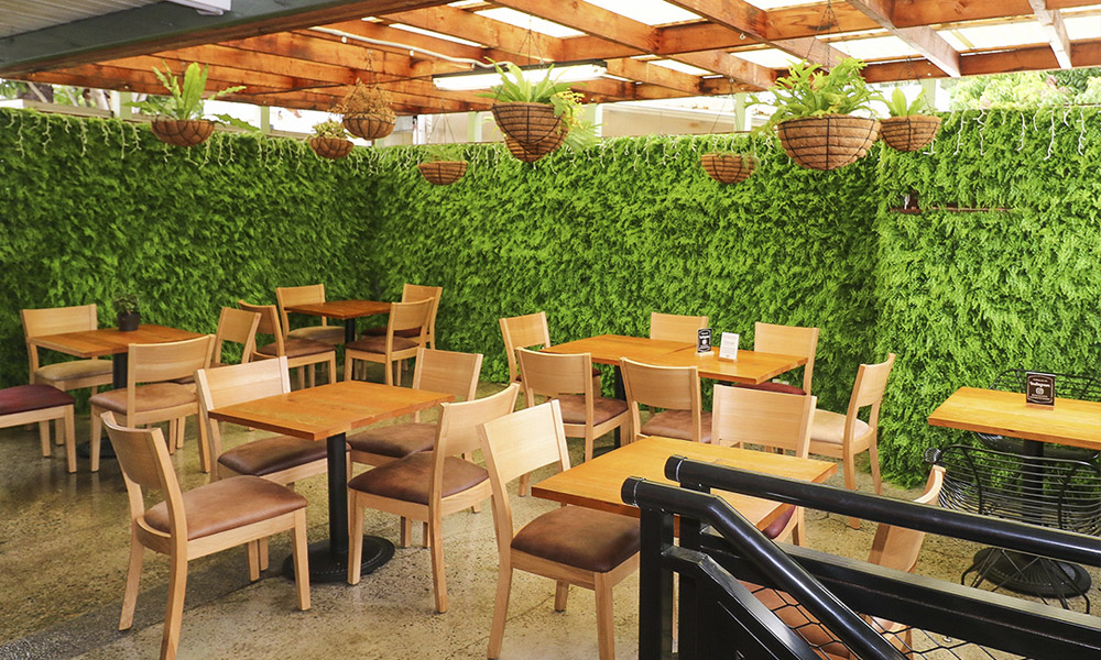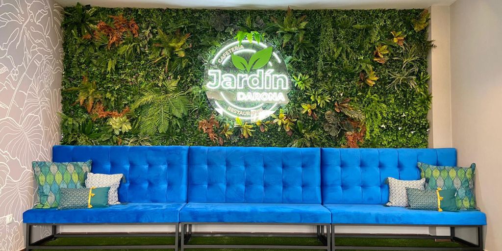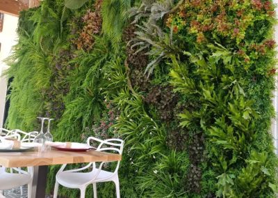 Jardines verticales artificiales diseñados especialmente para restaurantes y cafeterías. Crea un ambiente único y acogedor que cautivará a tus clientes desde el momento en que crucen la puerta.